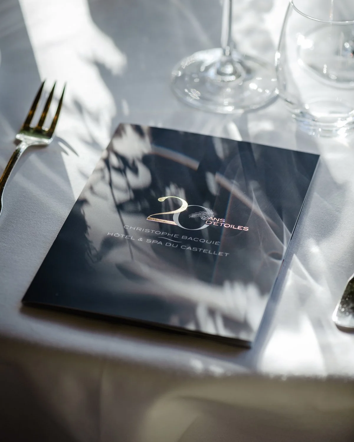 Imaginer une identité visuelle unique pour célébrer deux anniversaires d’exception, réunis dans un même logo, en écho à l’univers naturel du lieu (pomme de pin, feuillages…). J’ai ensuite décliné cette direction artistique à travers des menus raffinés, un livret hommage aux Chefs étoilés invités, ainsi que des visuels dédiés à la communication de l’événement, sur supports imprimés et digitaux.